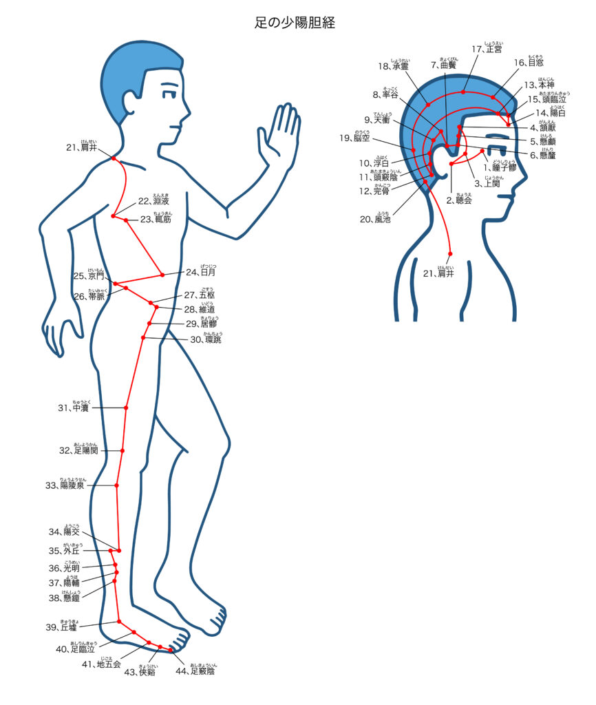 胆経と表裏関係の肝経(かんけい)と呼ばれる肝臓の巡りもその影響で悪い。