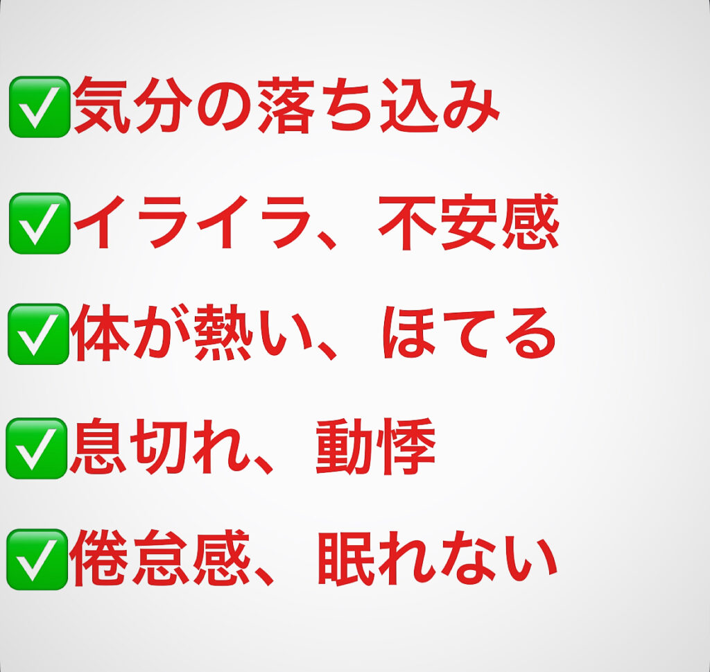 更年期障害で生じる症状は些細なことから始まる事が多く少し気になるけど、そのまま日常生活を過ごされる方がほとんどです。ホルモンか関係していたりストレスや体質なども関係してくることから、ただ薬を飲めば改善するような疾患ではありません。